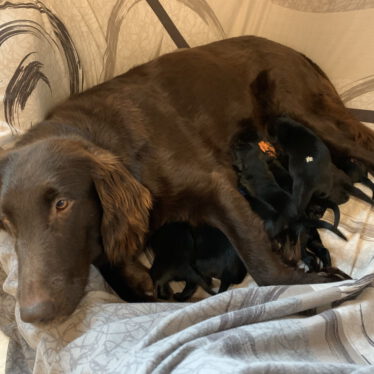 Wir haben 5 Rüden und 3 Hündinnen (alle wie erwartet schwarz).